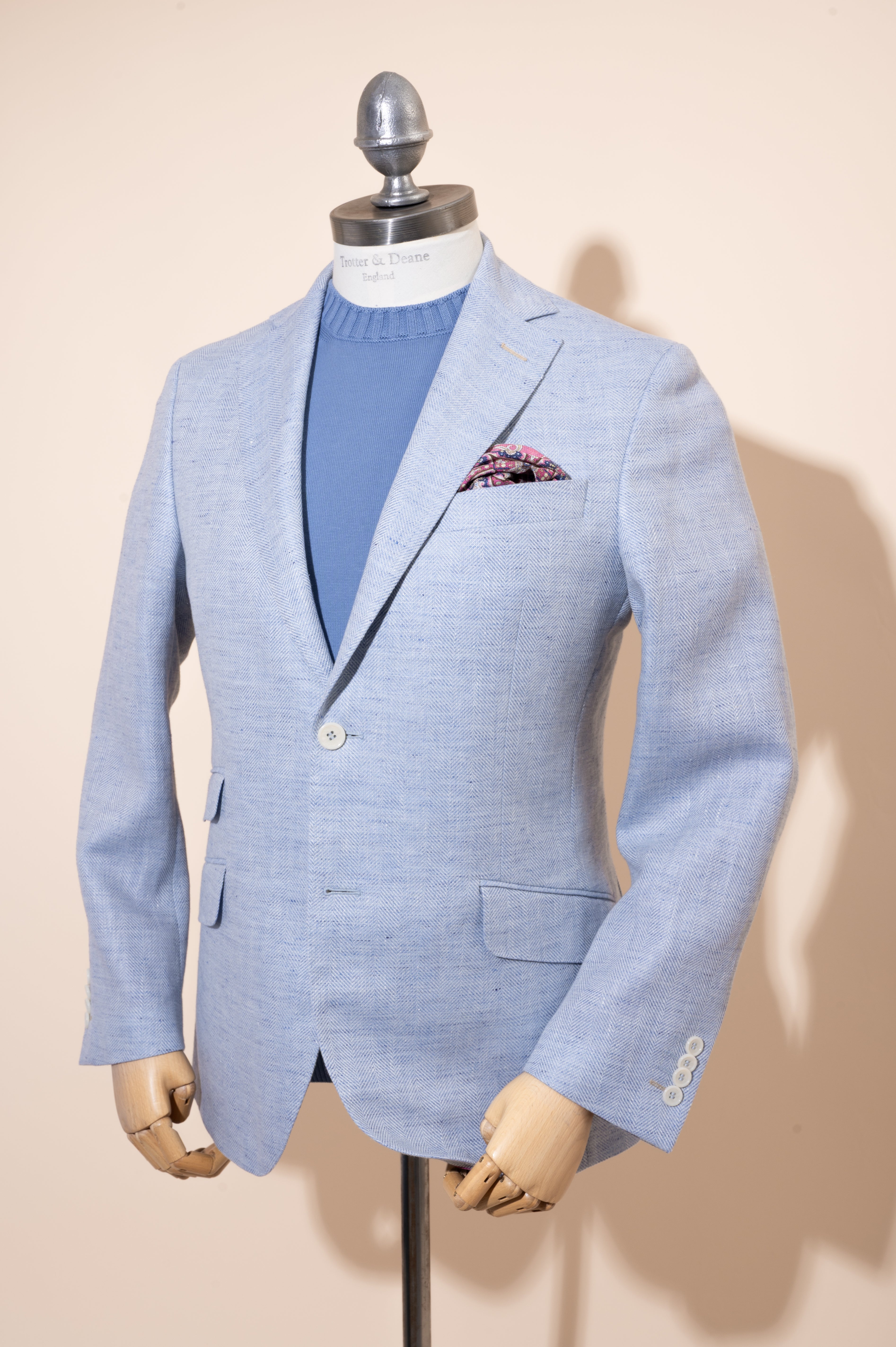 Our summer blend jackets are constructed from wool and linen, this combines the texture and look of linen but with an added sophisticated feel.