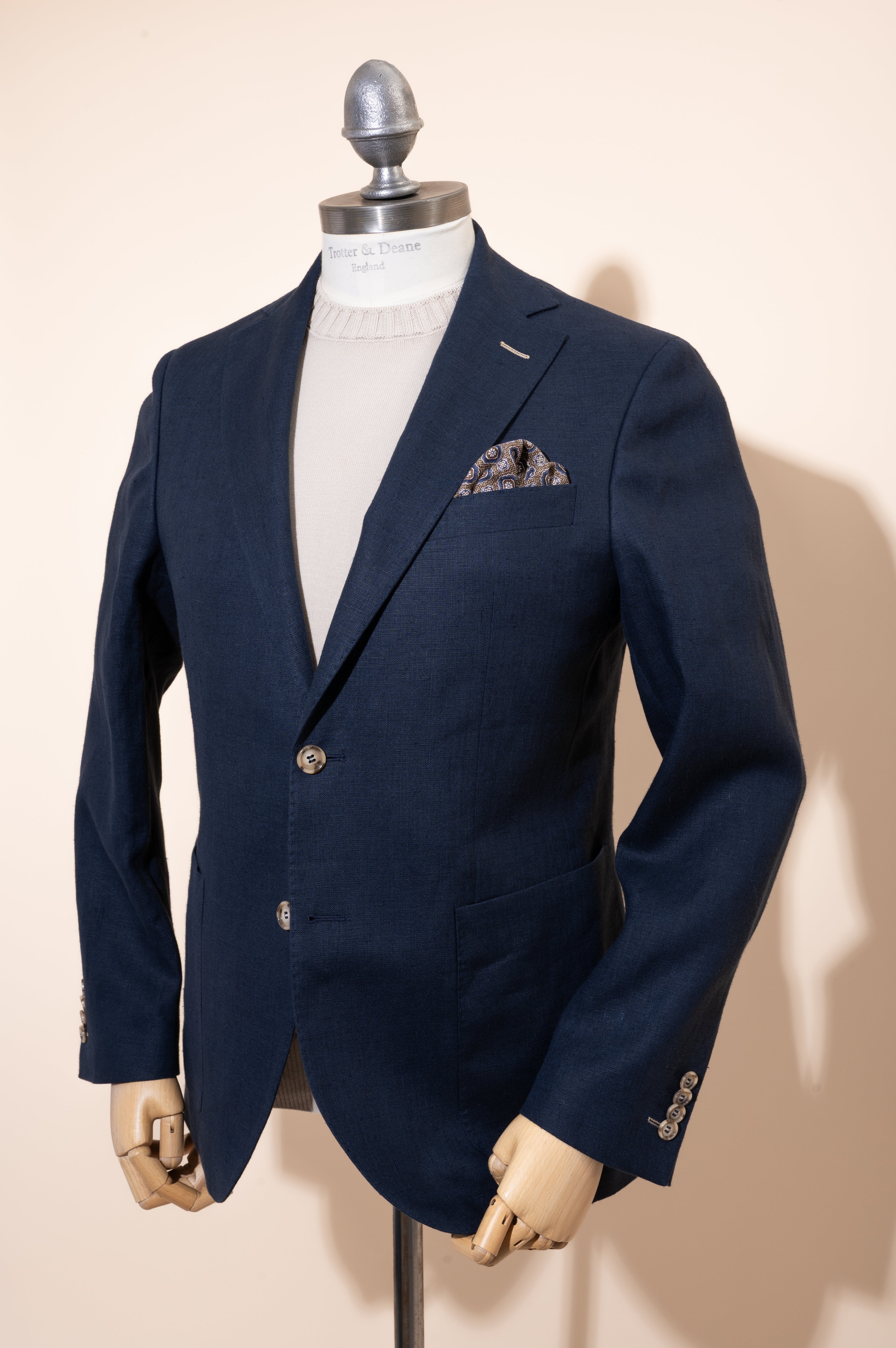 Our pure linen jacket cloths have been washed to soften their look and feel, and to minimise any heavy creasing. These jackets are ideal for relaxed summer settings, offering a balance of formality and comfort.