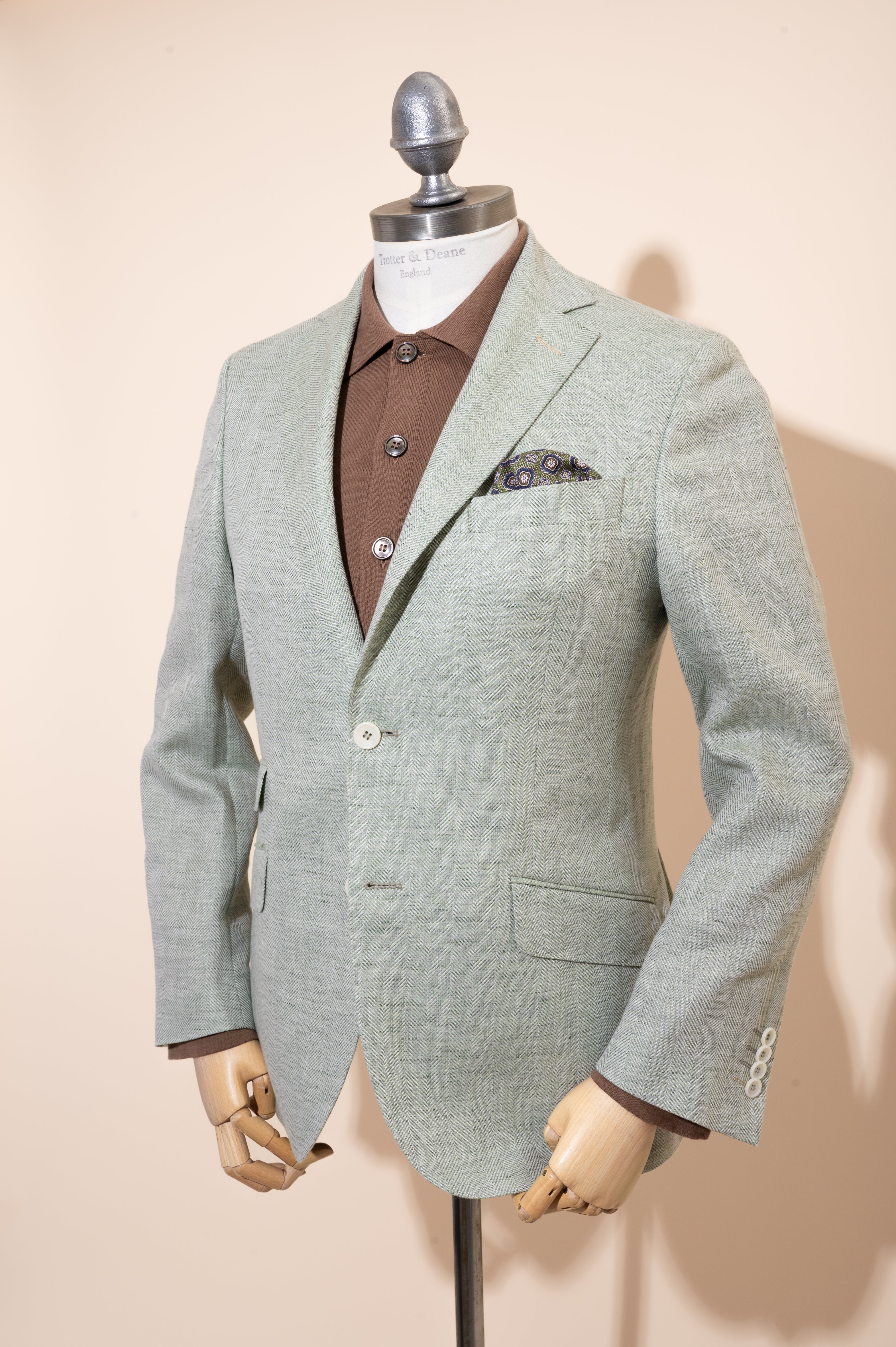 Our summer blend jackets are constructed from wool and linen, this combines the texture and look of linen but with an added sophisticated feel.