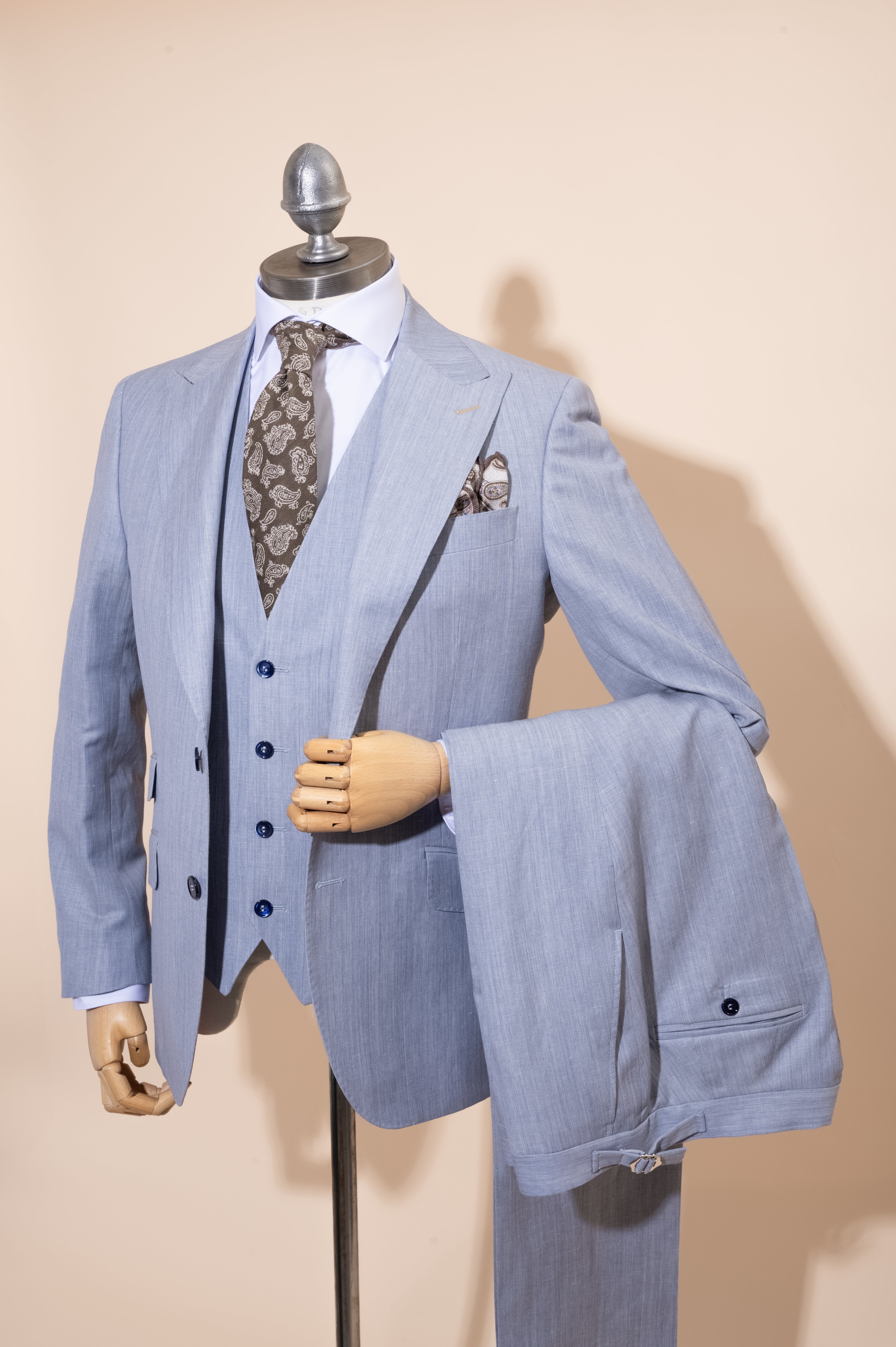 · Our summer blend suits are constructed from wool and linen, this combines the texture and look of linen but with an added sophisticated feel.