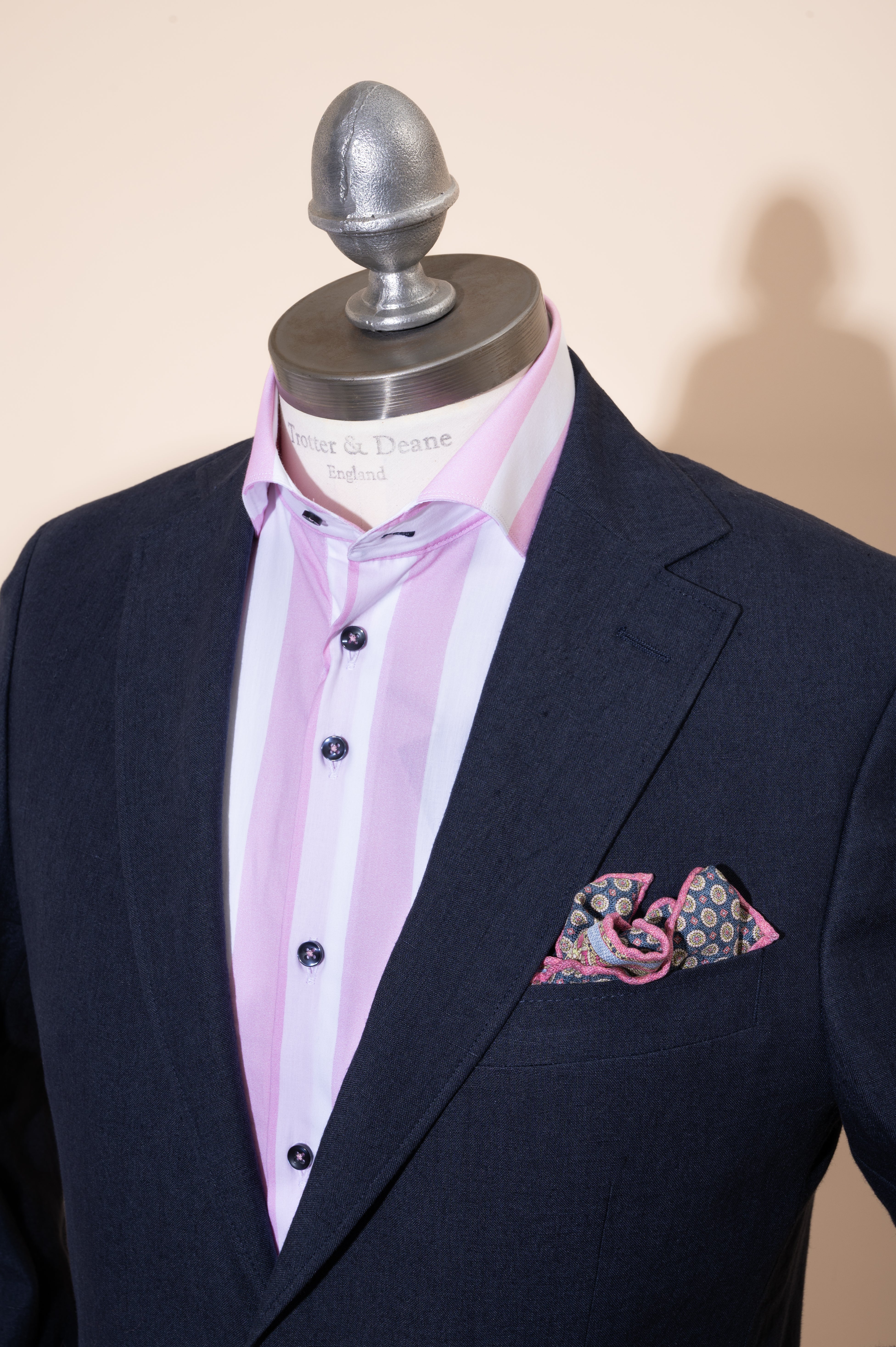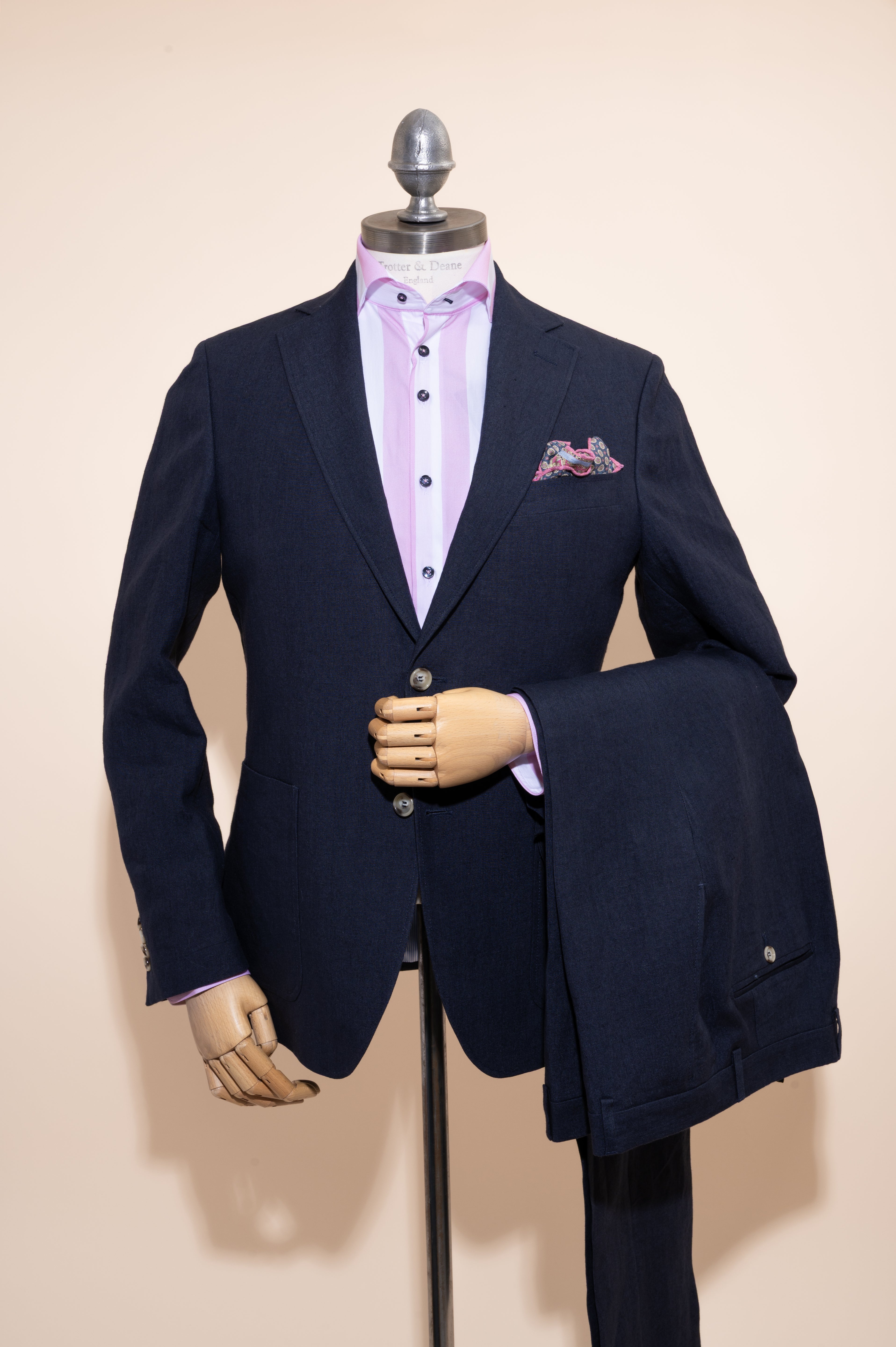 Our pure linen suit cloths have been washed to soften their look and feel, and to minimise any heavy creasing. These suits are ideal for relaxed summer settings, offering a balance of formality and comfort.