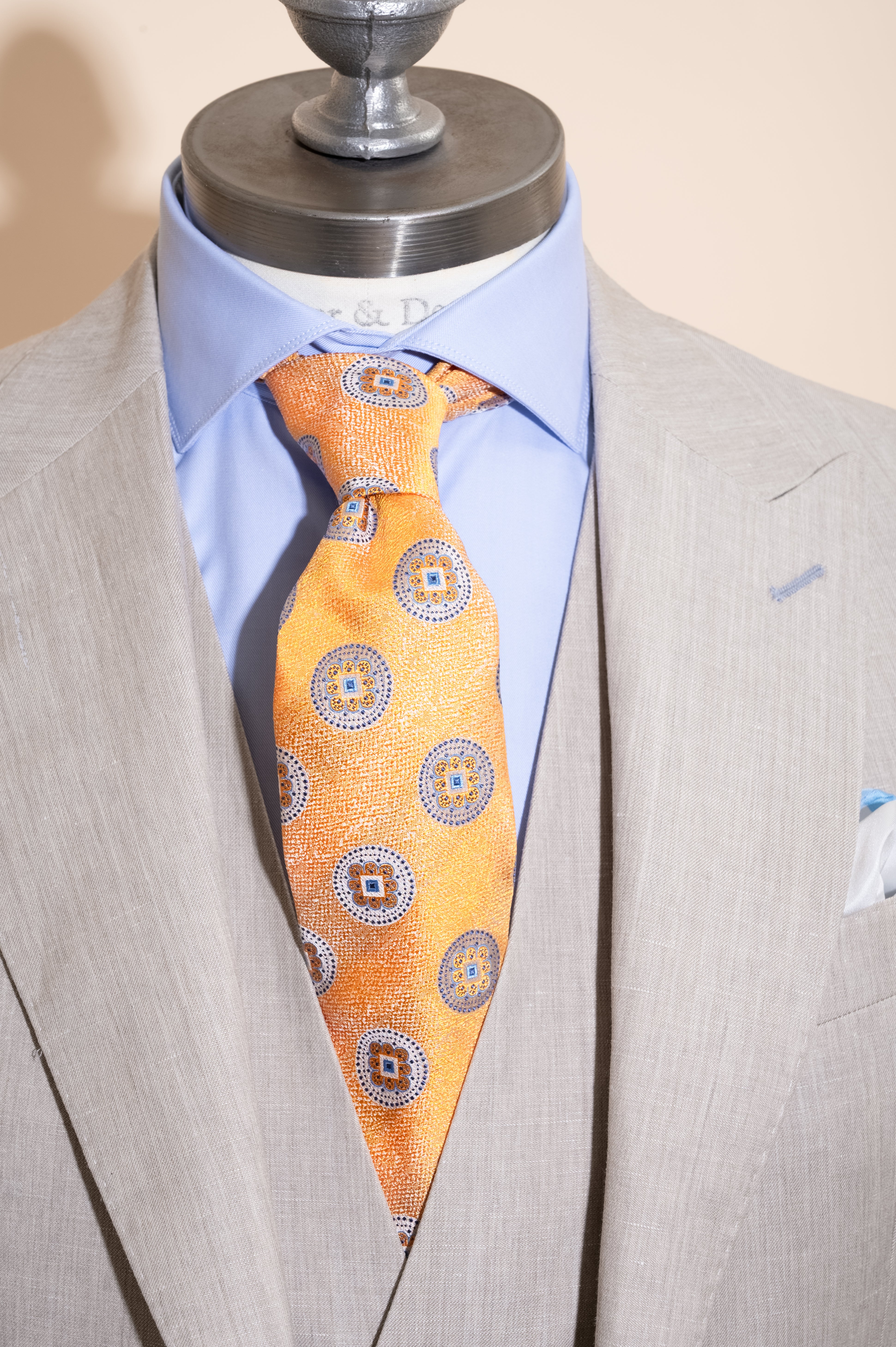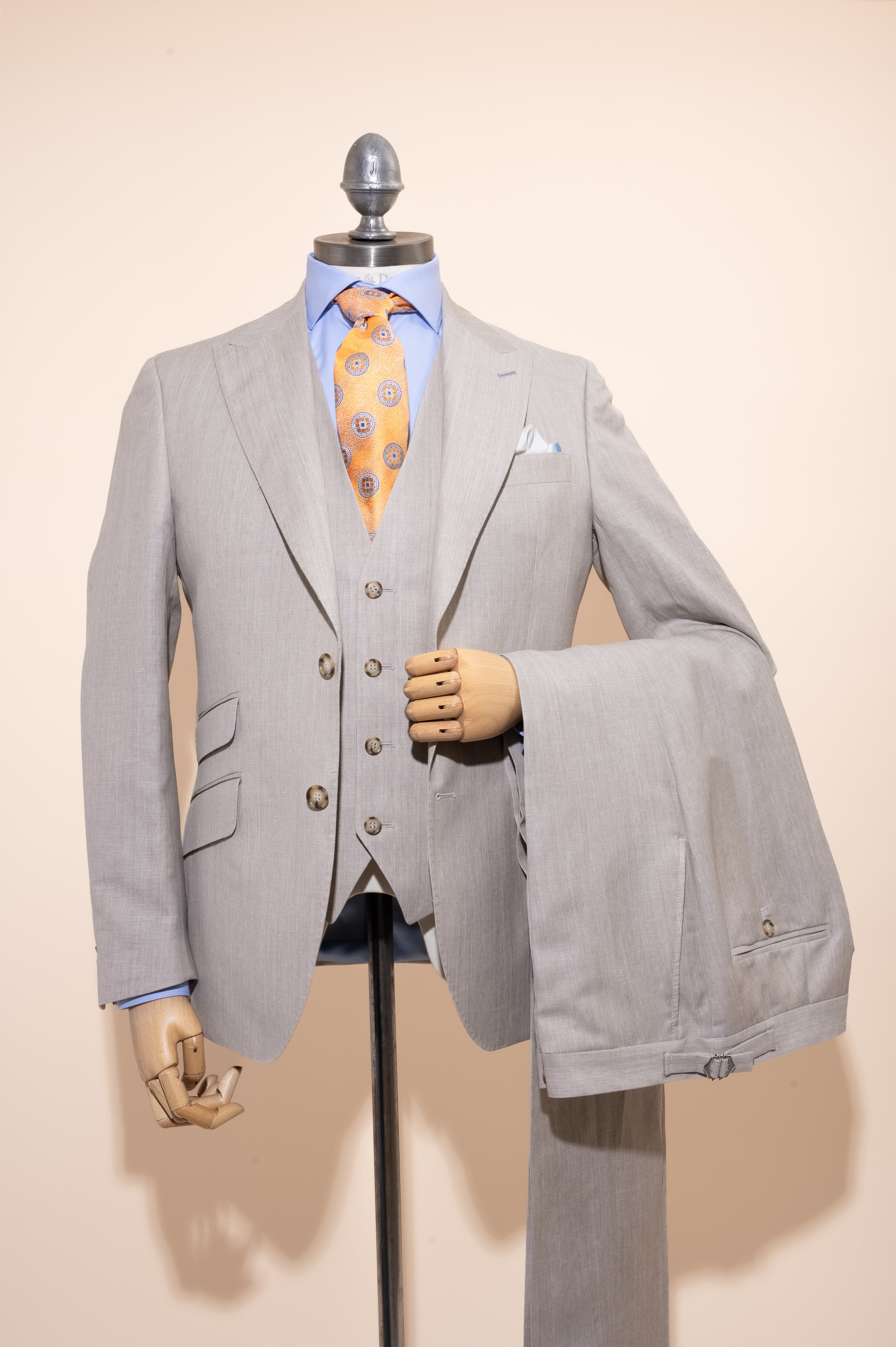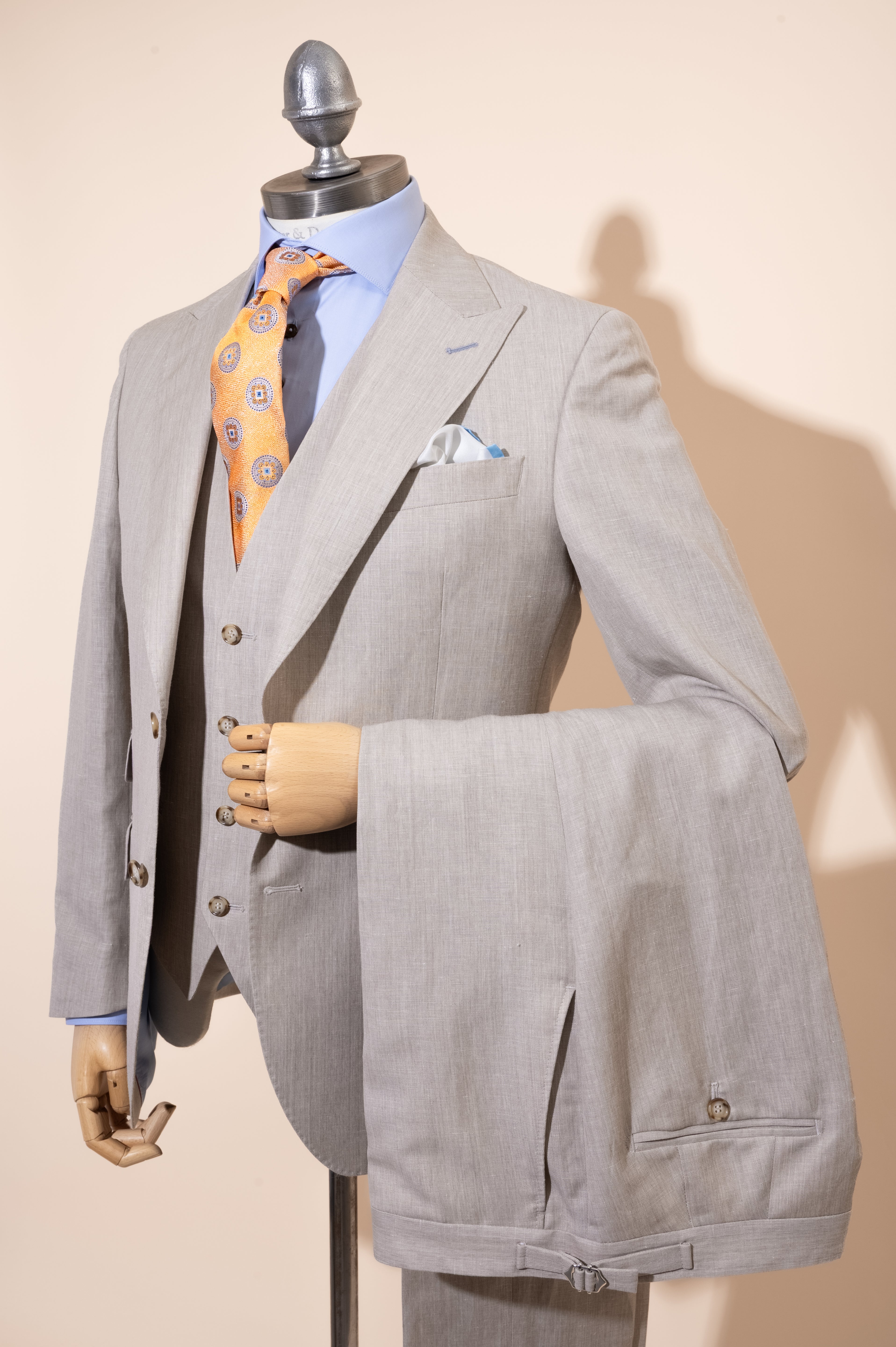 · Our summer blend suits are constructed from wool and linen, this combines the texture and look of linen but with an added sophisticated feel.