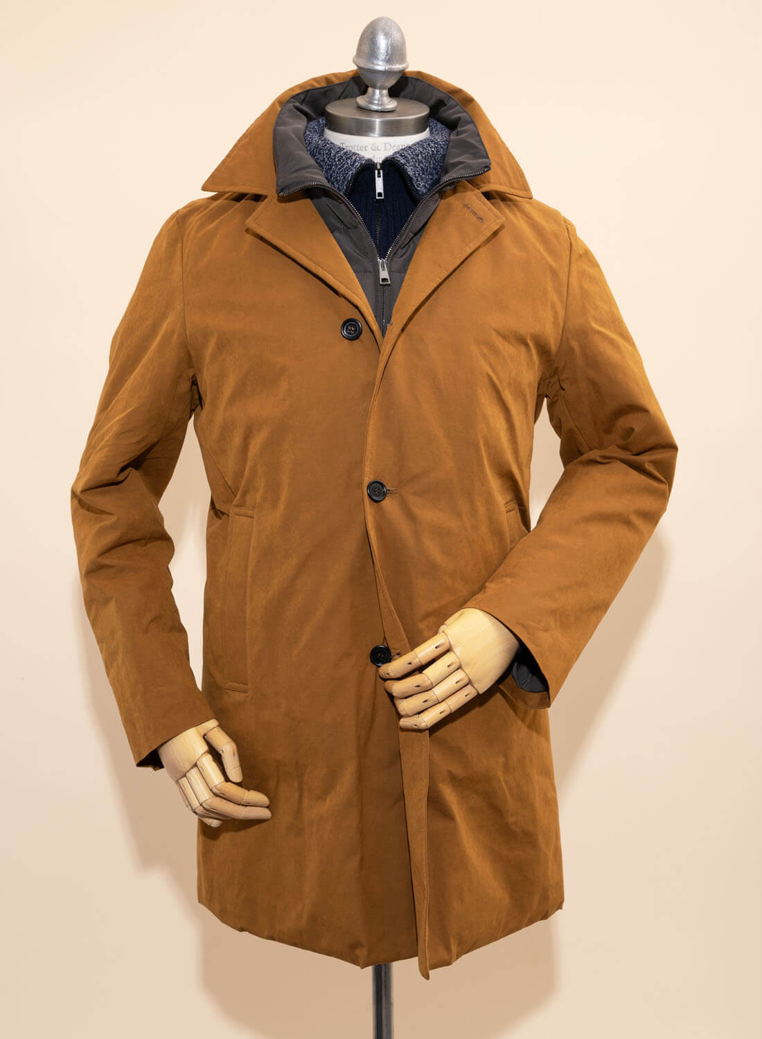 T&D’s exclusive Peach Cotton Coat in Mustard and Navy